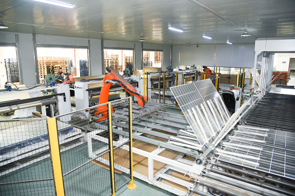 深夜,城市现已睡去,泰州索拉特特种玻璃有限公司的光伏玻璃出产车间内机器轰鸣声不断。车间内两条全自动化出产线正照旧作业,几名工人佩带口罩在工位上繁忙着。