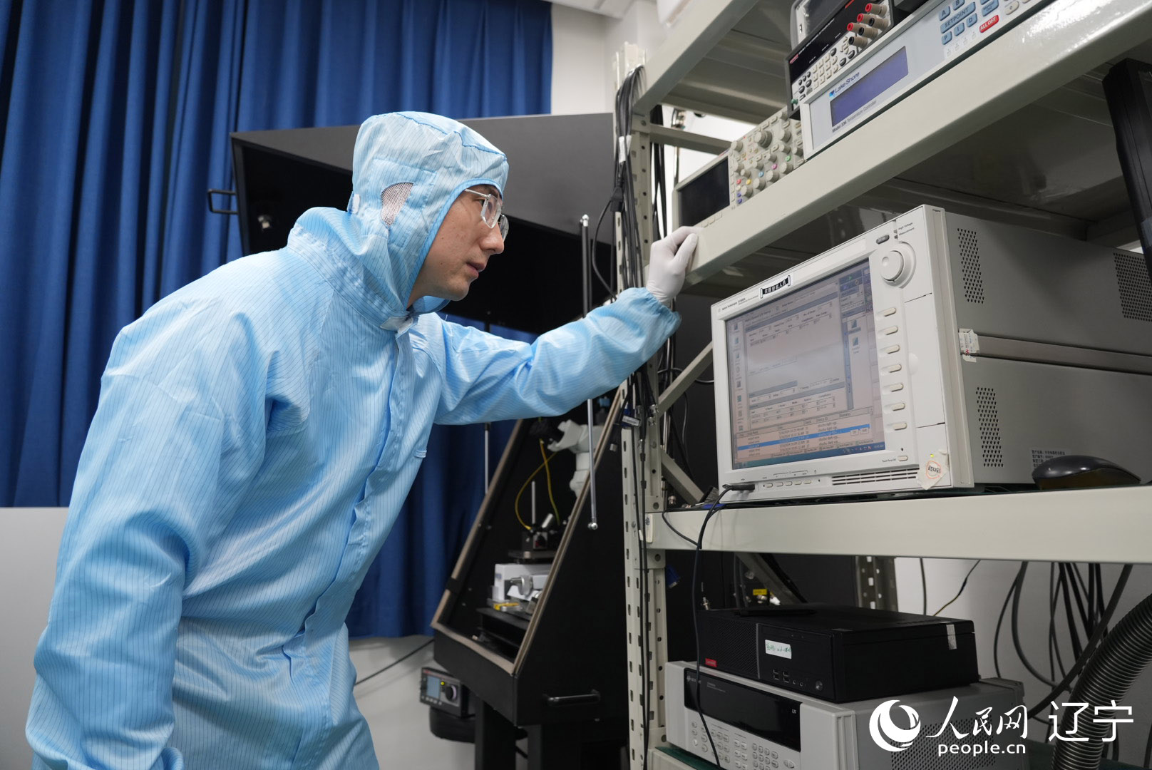 在中国科学院金属研究所纳米碳基电子器件超净实验室内,孙东明在查看试验样品数据。人民网记者 周颂雪摄