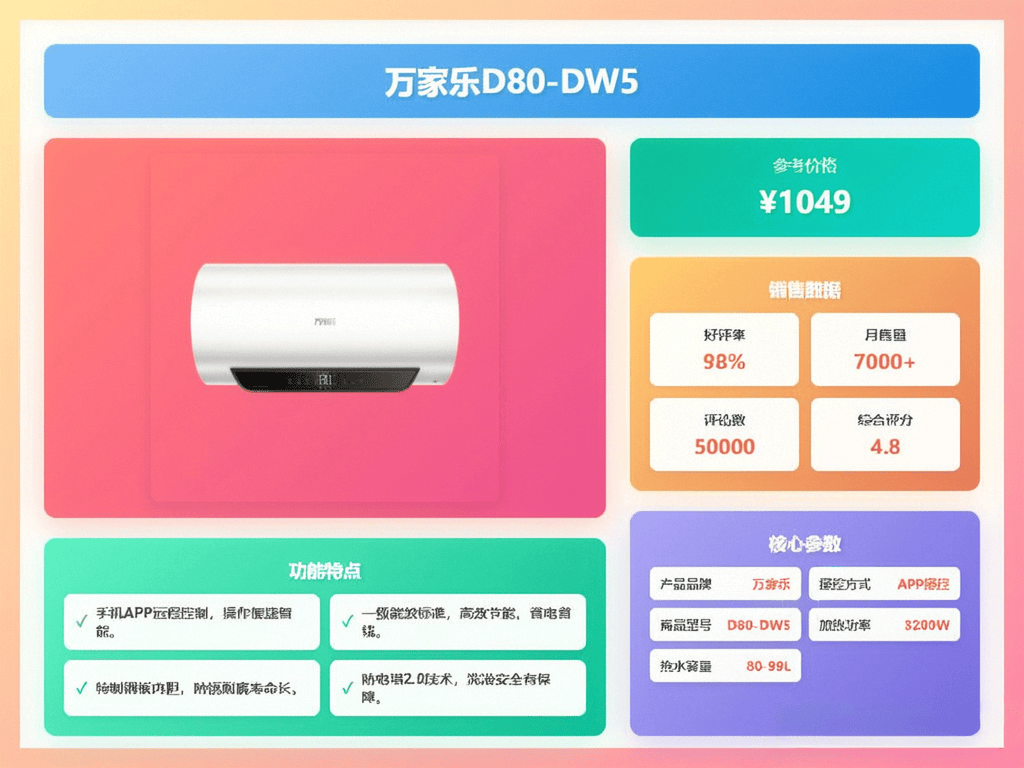 总而言之,万家乐和小米的电热水器各有优势,选择哪个品牌,关键在于你的实际需求和预算。如果你注重性价比、追求实用性,并且对品牌有一定偏好,那么万家乐可能更适合你。如果你追求智能化体验、是米家智能家居的粉丝,并且预算充足,那么小米电热水器会给你带来更好的使用体验。不妨多了解不同型号的具体参数和用户评价,结合自己的实际情况,做出明智的选择吧!